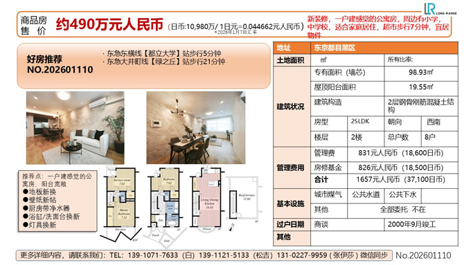 新装修,一户建感觉的公寓房,周边有小学,中学校,适合家庭居住,超市步行7分钟,宜居物件 |